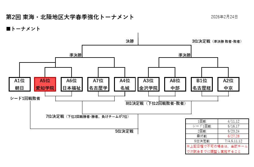 第2回 東海・北陸地区大学春季強化トーナメント 要項